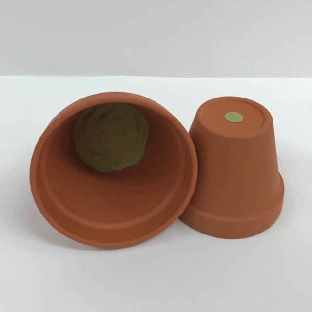 Comme nos tests d'hier semblent prometteurs, j'ai acheté quelques exemplaires de pot à fleurs qui serviront de moules improvisés pour les tests suivants. Afin d'assurer un bon fonctionnement lorsque le moule est mis sous vide, j'ai bouché le drain au fond des pots. Les pots sont faits de terre cuite et ça m’inquiète un peu. Il reste à voir s’ils tiendront le coup au moment de démouler les pièces.
